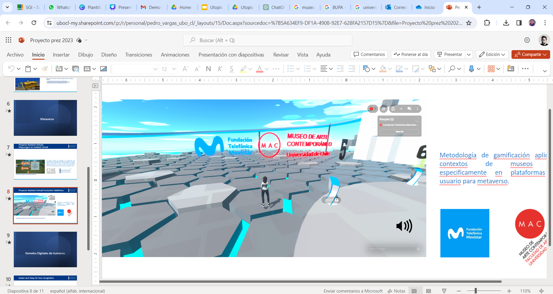 Se desarrolló plataforma MISSUS para Metaverso, en el cual se realiza el proyecto bajo el encargo del Museo de las Telecomunicaciones de Fundación Telefónica. Metodología de gamificación aplicada en contextos de museos virtual, específicamente en plataformas